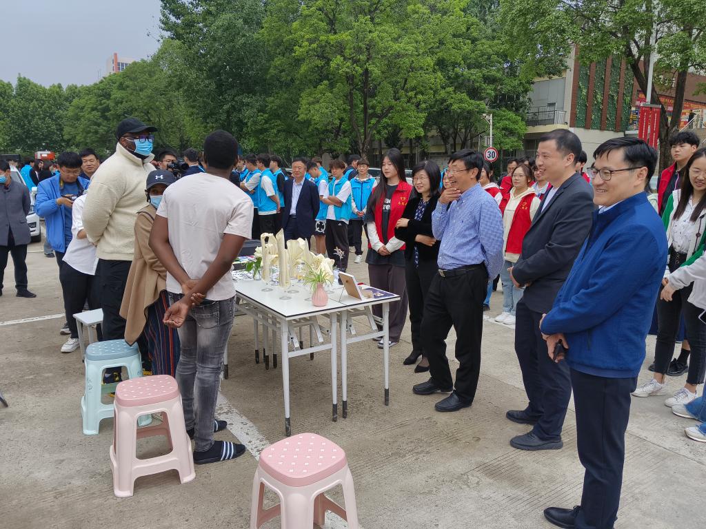 公司中外员工代表布置的劳动作品展台,在劳动周启动仪式上吸引了师生驻足参观和赞叹好评。