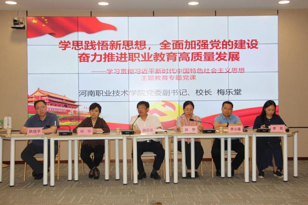 6月13日下午,公司党委副书记、董事长梅乐堂以《学思践悟新思想,全面加强党的建设,奋力推进职业教育高质量发展》为题,为师生党员讲授学习贯彻习近平新时代中国特色社会主义思想主题教育专题党课。教务处、文化旅游公司、yl23411永利全体师生党员聆听党课,党委副书记、纪委书记田华,党委委员、宣传部部长杨华列席。