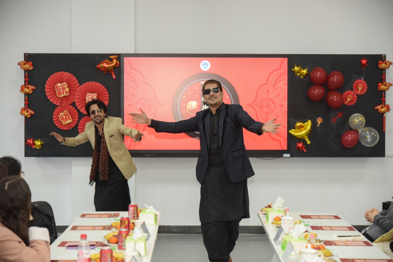 越南籍职工阮德芳庄,用汉语分享了自己来中国后的学习情况,在老师和同学的关心帮助下,收获了知识,也成长了很多。来自巴基斯坦的职工Billy表示很喜欢中国的文化,在这里交到了很多来自不同国家的朋友,拥有了许多美好回忆,并向大家介绍了自己国家的传统节日。来自巴基斯坦的Jack和Rafaqat还献上充满异域风情的民族舞蹈,将全场气氛推向高潮。