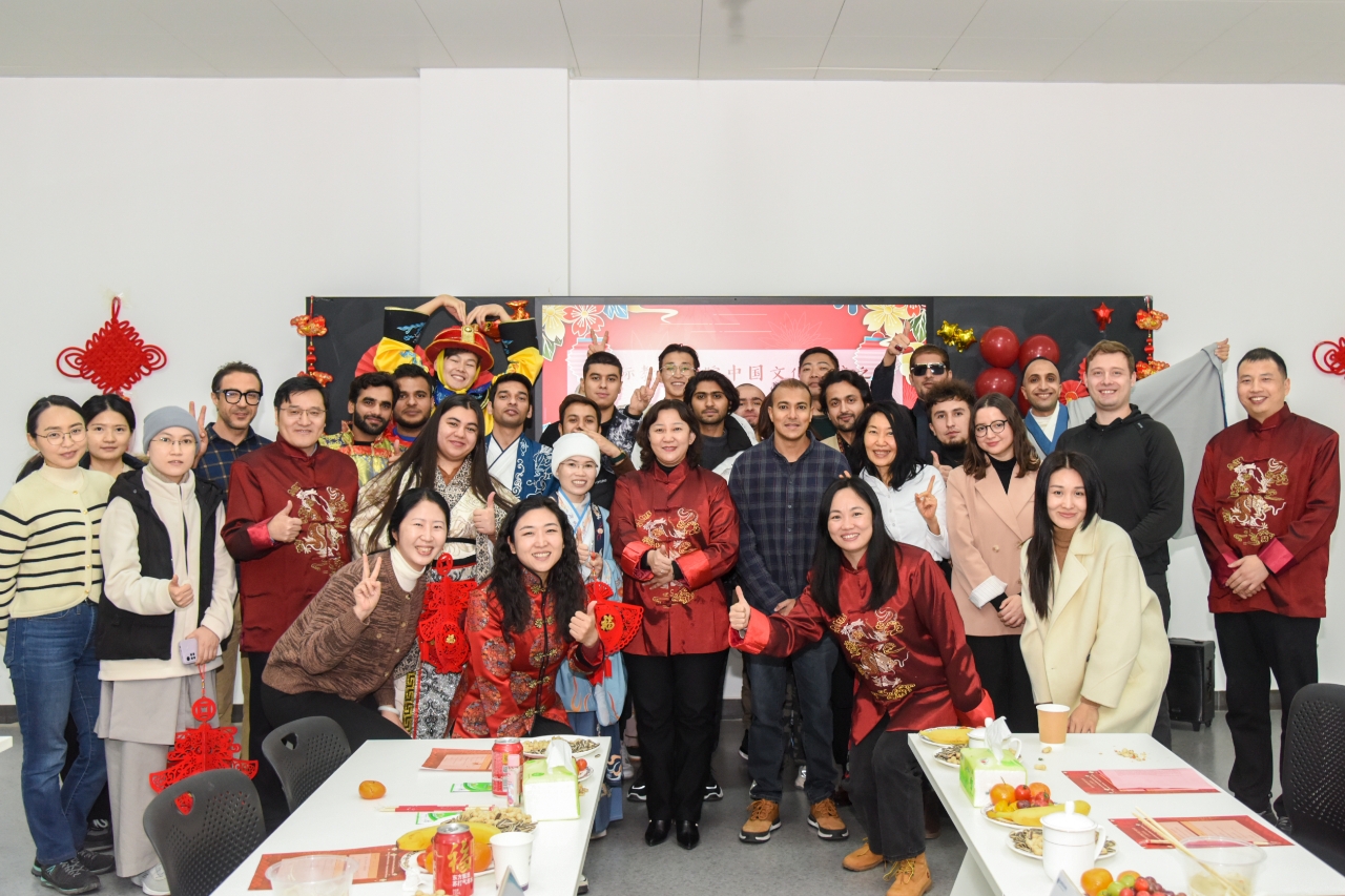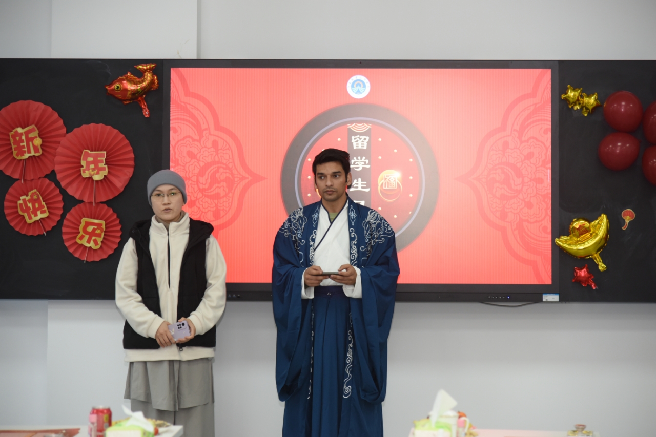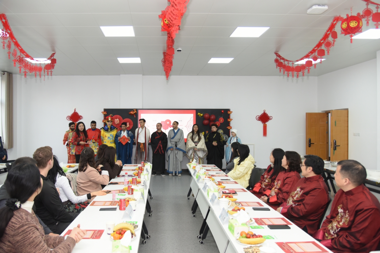 1月5日下午,董事长夏新颜、副董事长任枫轩在yl23411永利参加了“中华文化交流系列之春节”活动,同公司外教、职工欢聚一堂,共迎新年。国际合作交流处及yl23411永利全体人员、外籍教师和来华职工等40余人参加了此次活动。