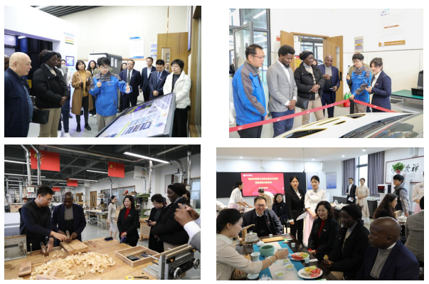 赞比亚职业教育使团一行还在夏新颜董事长和赵丽霞处长的陪同下,参观了公司的智能制造公司、汽车工程公司等实训中心。他们详细了解了公司的教学设施、实训条件和团队力量,对公司的教学质量和办学水平给予了高度评价。
