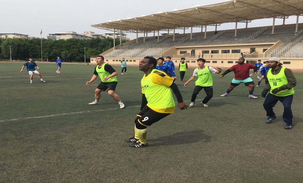 2022年5月14日下午,职工与校员工足球队在运动场举行了首场足球联谊赛。