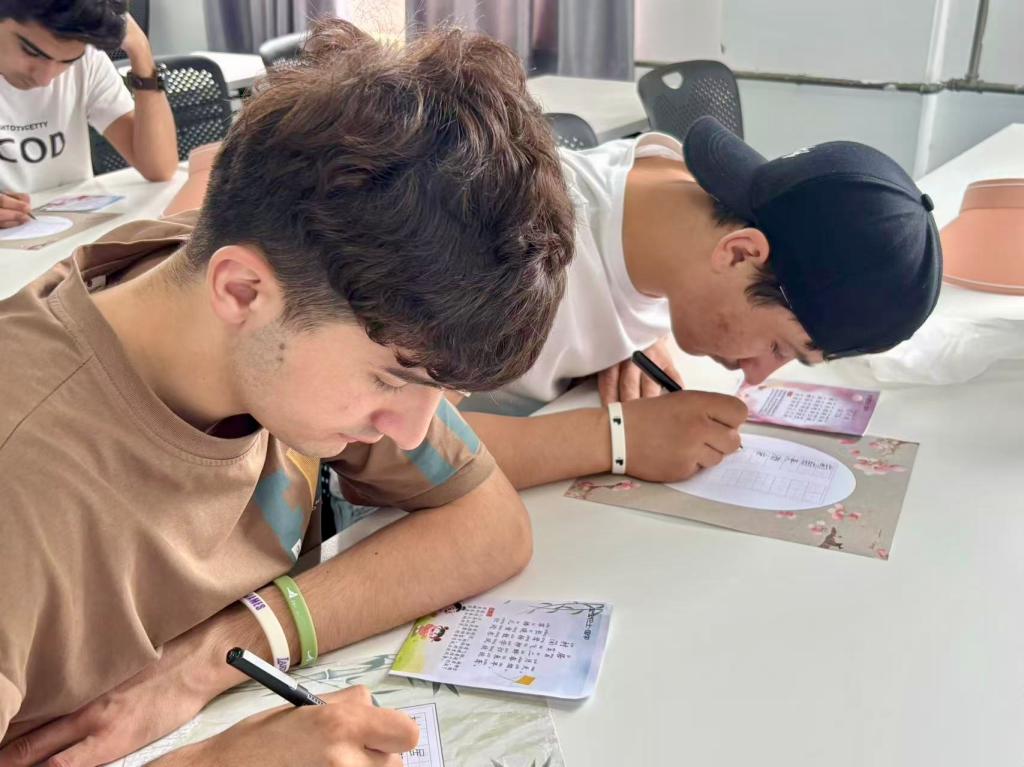 活动以汉字书写大赛收尾。职工选取喜爱的谷雨主题诗句,一笔一划,认真临摹。尽管笔法还显稚嫩,作品风格各异,但每个字都饱含着对中文的热爱与敬意。经过投票,来自吉尔吉斯斯坦的职工Aruzhan(琳星)的作品荣获“最佳笔韵奖”。
