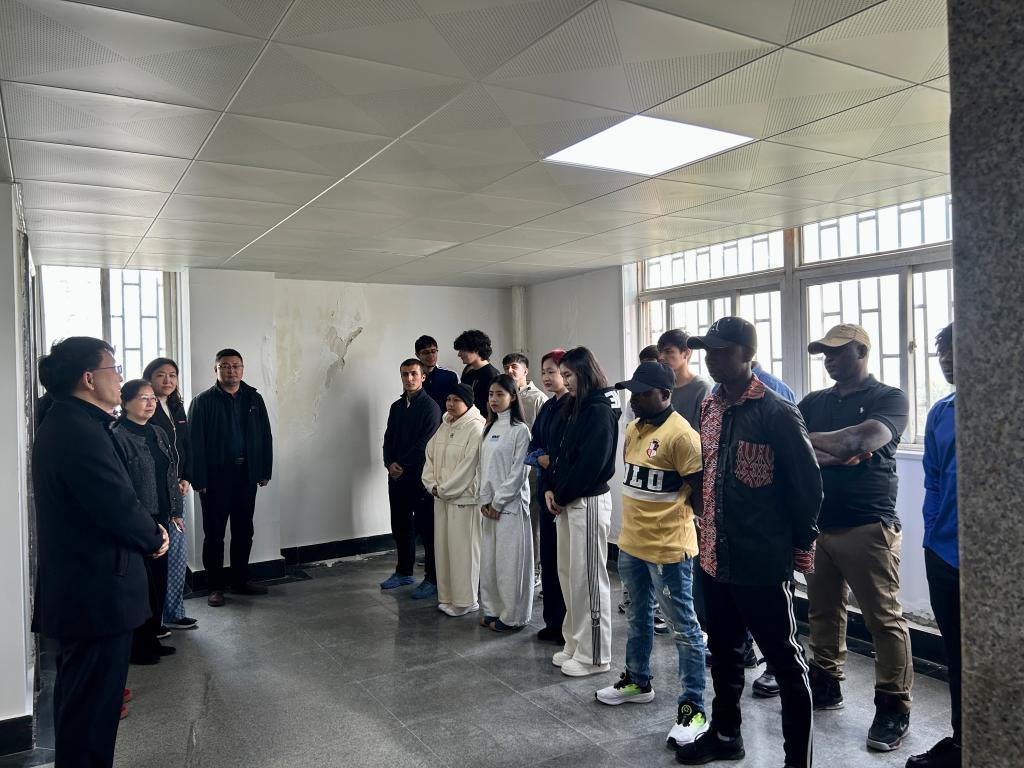 在健行楼8楼职工宿舍,马胜龙结合建筑结构特点,向外籍师生系统普及了火灾安全逃生知识,展示了楼层消防设施设备和使用方法,重点演示了灭火器的“提、拔、握、压”四字使用法则,并现场进行操作演练,确保每一位师生都能掌握灭火器的使用方法。