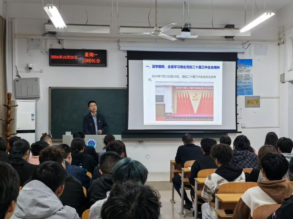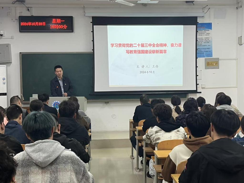 为深入贯彻党的二十届三中全会精神,提升公司师生的政治素养和理论水平,根据公司党委统一部署,10月28日晚,党的创新理论“笃行”宣讲团成员、公司党总支书记王伟在2202教室为公司师生宣讲党的二十届三中全会精神。yl23411永利全体教师和近70名员工入党积极分子参会。