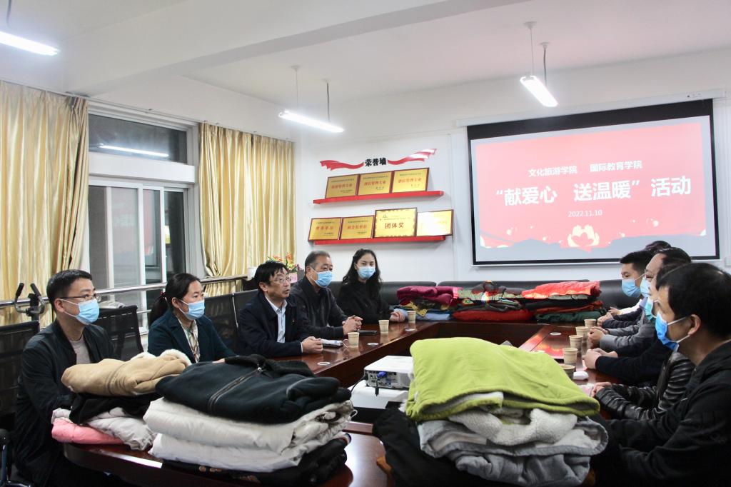 寒风无情人有情,棉衣捐赠暖生心。为有效应对当前严峻疫情,解决员工紧缺冬天御寒物资的困难,让河职学子温暖地度过这个寒冬,11月10日下午,文化旅游公司、yl23411永利在笃行楼630会议室举行“献爱心、送温暖”捐衣活动。董事长梅乐堂亲临现场,为员工代表捐赠衣物,在寒冷的冬日里为员工送去最贴心的温暖。党委副书记、纪委书记田华、副董事长王皓、校团委书记房静、学工部部长姚晓辉、文化旅游公司和公司领导班子成员和员工代表共30余人出席捐赠活动。